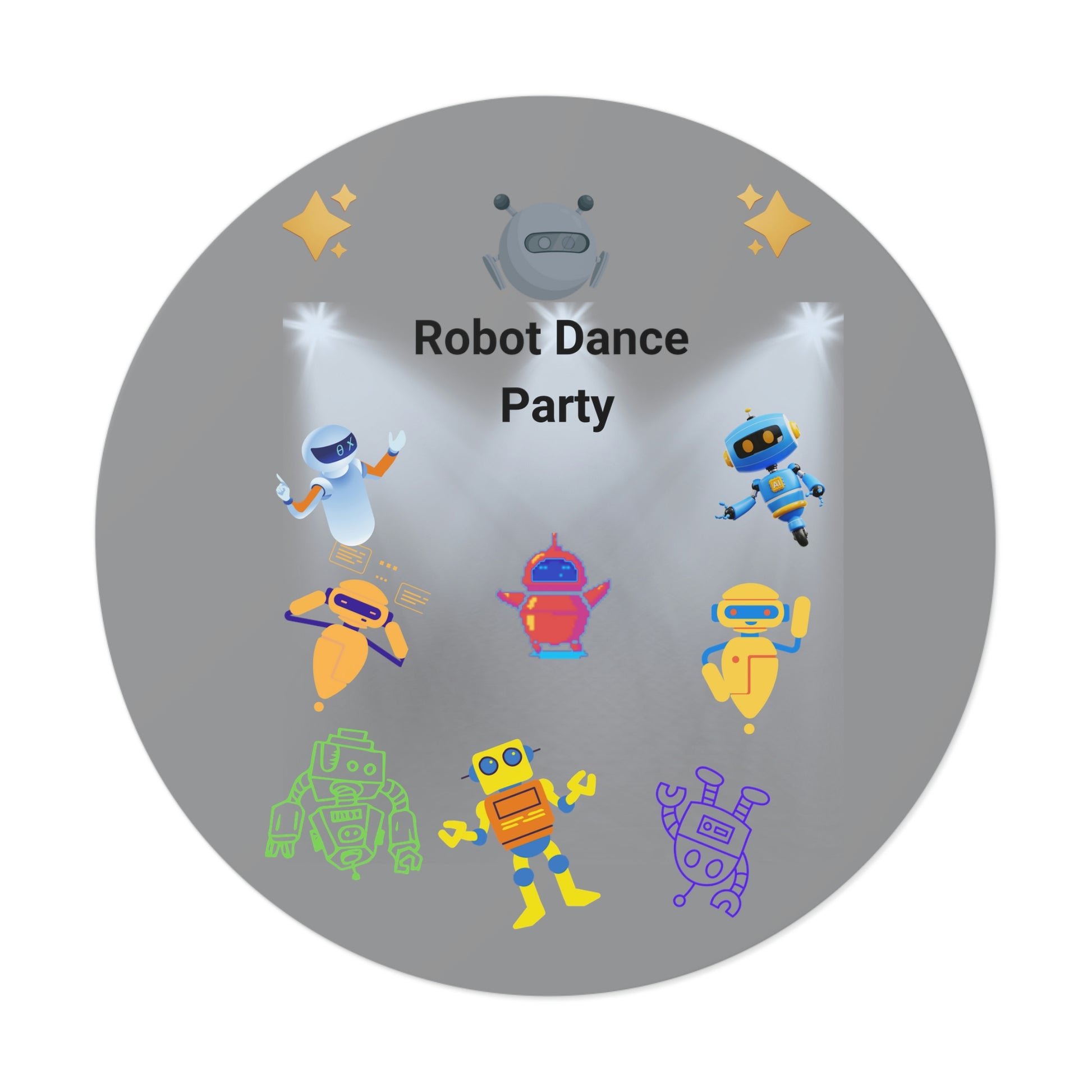 "Robot Dance Party" - Round Vinyl Stickers